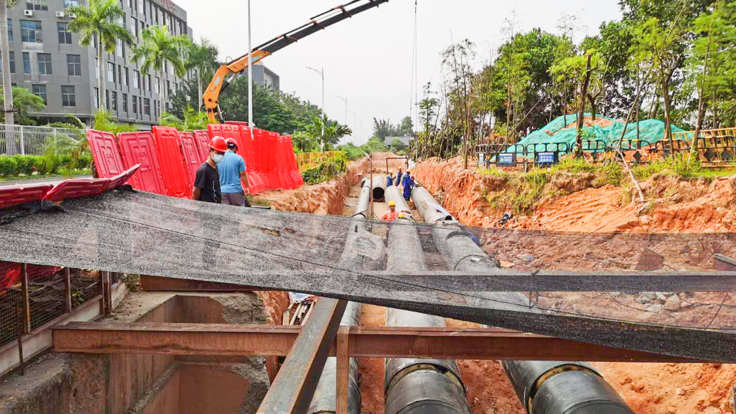 項目規(guī)模:從華電能源站建設(shè)至臨松路、臨惠路、榮田路、翠景路、蘭和路等熱用戶,蒸汽管道管徑DN450、DN300、DN200,冷水管道管徑為DN700、DN500,主管道總長度18.3km