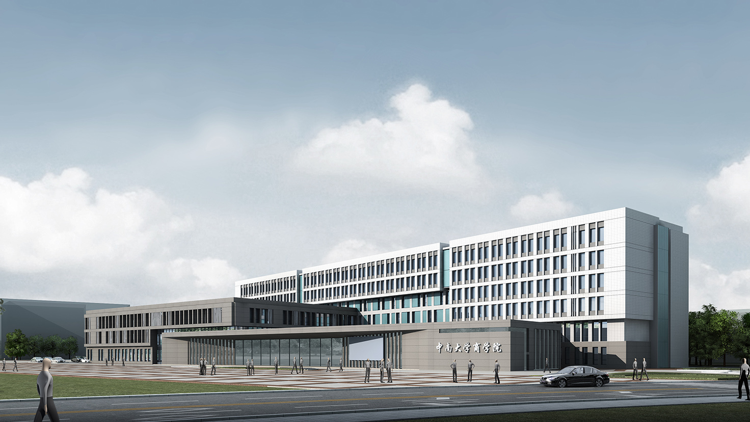 設(shè)計(jì)背景:中南大學(xué)作為以工科為主的院校,新校區(qū)的建筑大多側(cè)重于厚重,敦實(shí),外觀簡潔實(shí)用;而商學(xué)是注重實(shí)戰(zhàn)的學(xué)科,注重交流,與人溝通,是站在時(shí)代前沿的行業(yè)。作為校區(qū)東大門的第一棟教學(xué)科研建筑,我們希望商學(xué)樓的外形是大氣的、凝重的、敦實(shí)的,能充分體現(xiàn)商學(xué)院沉穩(wěn)的、具有人文氣息的特質(zhì),成為新校區(qū)建筑形態(tài)的經(jīng)典之筆。
